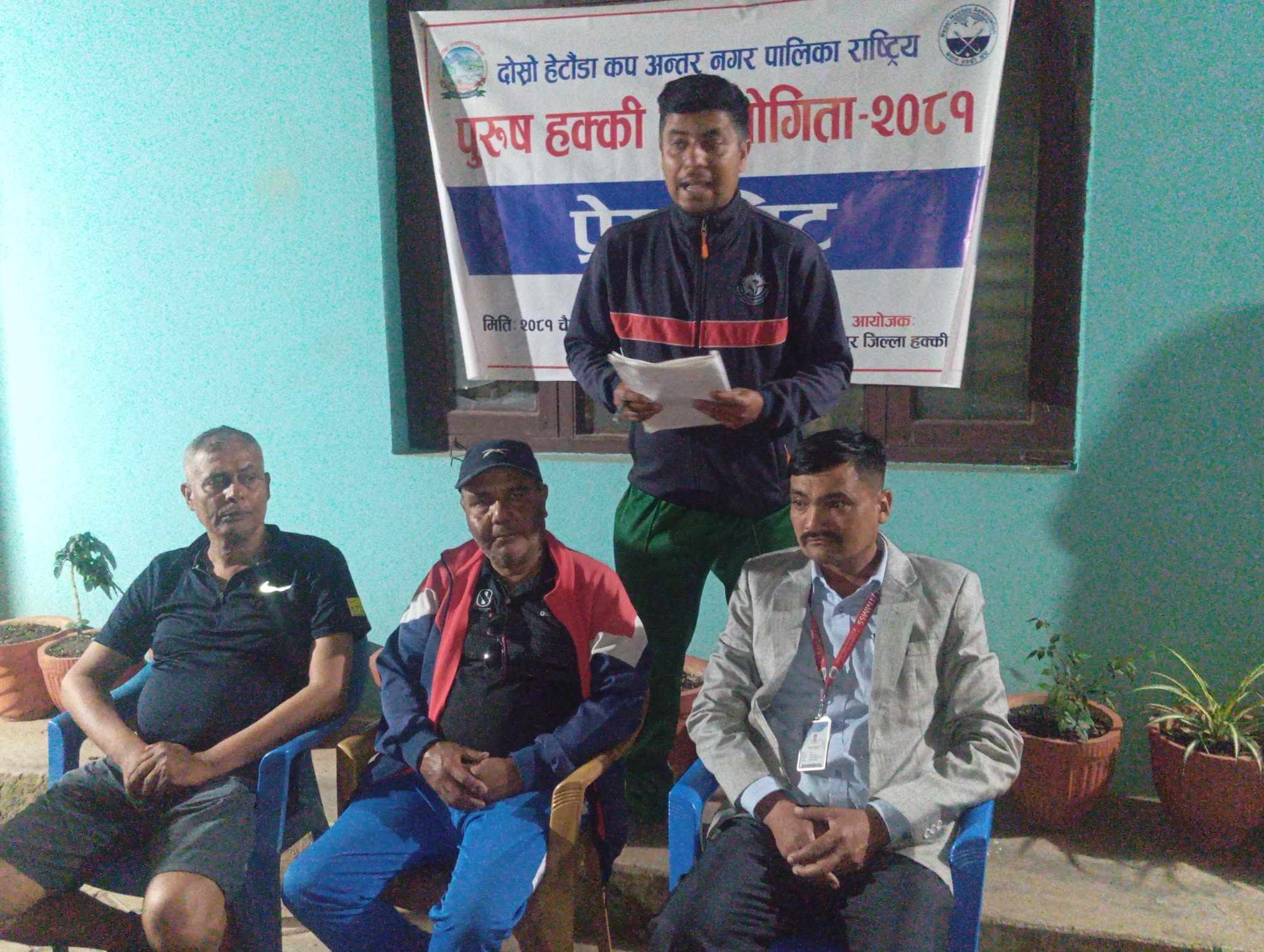 बुधबार हेटौंडा–४ स्थित हुप्रचौरमा पत्रकार सम्मेलन गर्दै मकवानपुर जिल्ला हक्की संघका अध्यक्ष मनोज शर्माले प्रतियोगिताको सम्पूर्ण तयारी पूरा भएको जानकारी गराउनुभएको छ । दोस्रो संस्करणको अन्तरनगरपालिका हेटौंडा कप राष्ट्रिय हक्की प्रतियोगिता हेटौंडा–४ स्थित हुप्रचौरमा सञ्चालन हुने अध्यक्ष शर्माले बताउनुभयो ।