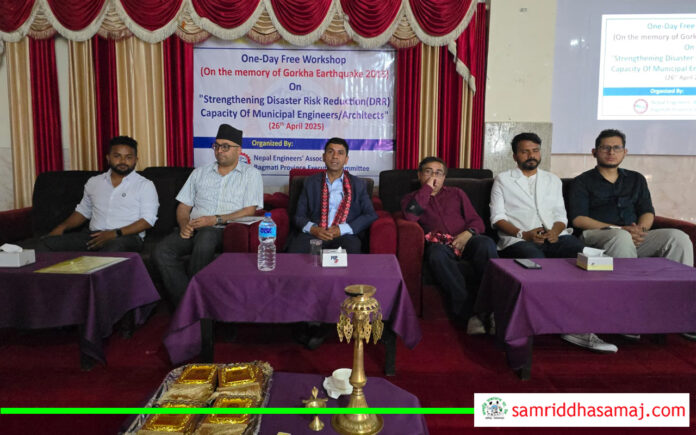 हेटौँडा : नेपाल इन्जिनियर्स एसोसिएसन बागमती प्रदेश समितिले विपद् जोखिम न्यूनीकरणमा पालिकाका इन्जिनियरको सक्षमता विषयक कार्यशालाको आयोजना गरेको छ । २०७२ सालको महाभूकम्पको वार्षिकीको सन्दर्भमा शनिबार हेटौँडामा भएको कार्यशाला आयोजना गरिएको हो ।