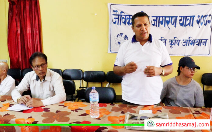 हेटौँडा : खाद्य सुरक्षा तथा जैविक खेती प्रवद्र्धनका लागि अभियान सुरु गरिएको छ । खाद्यका लागि कृषि अभियानले गत बैशाख ९ गतेबाट रासायनिक मल र विषादीको प्रयोग रोक्न तथा पोषणयुक्त खाना सुनिश्चित गर्न जैविक जागरण अभियान सुरु गरेको हो ।