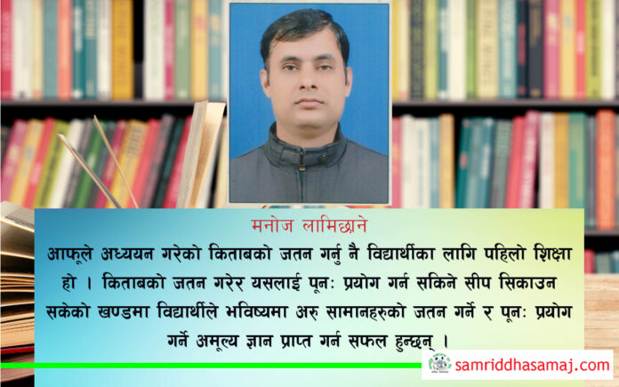 आफूले अध्ययन गरेको किताबको जतन गर्नु नै विद्यार्थीका लागि पहिलो शिक्षा हो । किताबको जतन गरेर यसलाई पूनः प्रयोग गर्न सकिने सीप सिकाउन सकेको खण्डमा विद्यार्थीले भविष्यमा अरु सामानहरुको जतन गर्ने र पूनः प्रयोग गर्ने अमूल्य ज्ञान प्राप्त गर्न सफल हुन्छन् । यसका लागि विद्यालयले प्रत्येक वर्षको अर्धवार्षिक र वार्षिक परीक्षामा किताबको जतन गर्ने विद्यार्थीको स्तर अनुसार प्रयोगात्मक परीक्षामा अंक दिने व्यवस्था गरिनुपर्ने देखिन्छ ।