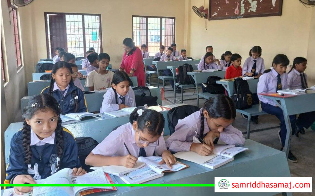 हेटौँडा–५, पिप्लेस्थित बालज्योति माविमा बिहीबार कक्षाकोठामा अध्ययन गर्दै गरेका विद्यार्थीहरु ।