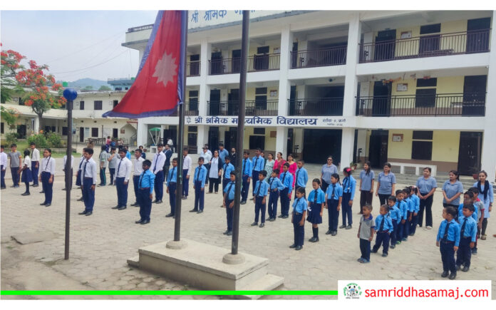 हेटौँडा–४, कर्रास्थित श्रमिक माविमा बिहीबार बिहान प्रार्थना समयमा उपस्थित भएका विद्यार्थीहरु ।