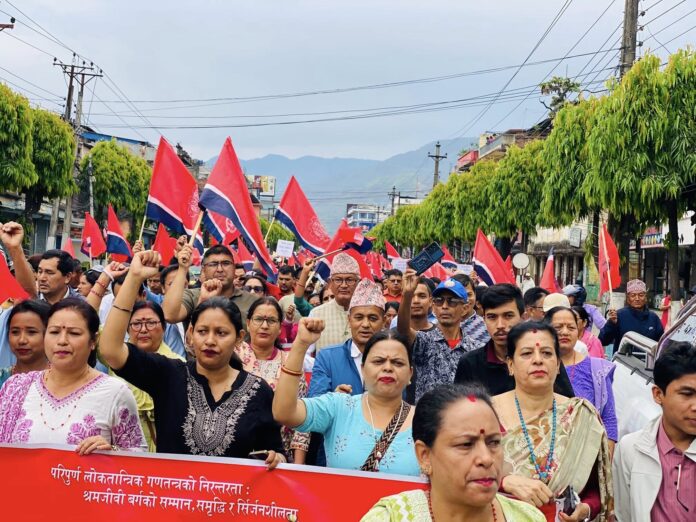 हेटौँडा : अन्तर्राष्ट्रिय श्रमिक दिवसको अवसरमा बिहीबार हेटौँंडामा प्रभातफेरीको आयोजना गरिएको छ । नेकपा एमालेसम्बद्ध नेपाल ट्रेड युनियन महासंघ (जिफन्ट) मकवानपुरको आयोजनामा हेटौँडा–१० स्थित वन विज्ञान क्याम्पस अगाडि भेला भएर हेटौँडा नगर परिक्रमा गरेको थियो ।