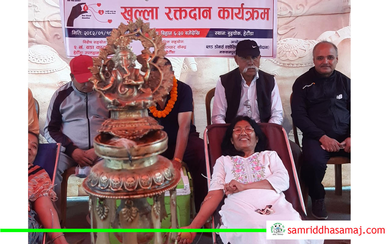 बुद्धचोकमा ब्लड डोनर्स एशोसिएसन मकवानपुरको आयोजनामा तथा २ नम्बर वडा कार्यालयको विशेष सहयोगमा रक्तदान कार्यक्रम भएको थियो । कार्यक्रममा २३ जनाले रक्तदान गरेका छन् । यस्तै हेटौँडा–१० बसपार्कमा भएको कार्यक्रम १५ जनाले रक्तदान गरेका थिए । कार्यक्रममा रक्तसंचार केन्द्रको प्राविधिक सहयोग रहेको थियो ।