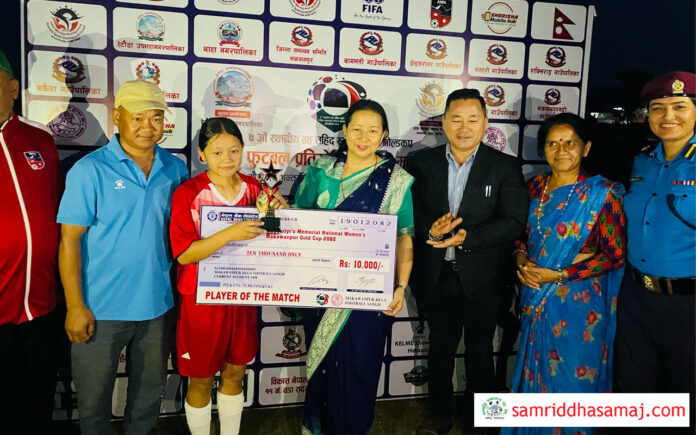 प्लेयर अफ द म्याच चितवनकी अनिता गुरुङ घोषित भइन् । उनले नगद १० हजार रुपैयाँ तथा ट्रफि प्राप्त गरिन् । प्रतियोगिता अन्तर्गत शनिबार बारा जिल्लाको नवजनजागृति क्लब र संकटा क्लबबीच खेल हुनेछ । बैशाख २५ गतेसम्म संचालन हुने प्रतियोगिताको विजेताले ५ लाख रुपैयाँ र उपविजेताले ३ लाख रुपैयाँसहित शिल्ड, मेडल तथा प्रमाणपत्र पाउने छन् । प्रतियोगिताको सर्वोत्कृष्ट खेलाडीले स्कुटर प्राप्त गर्नेछ भने विधागत खेलाडीहरुलाई पनि पुरस्कारको व्यवस्था गरिएको छ । हेटौँडा उपमहानगरपालिकाकी प्रमुख मीना कुमारी लामाले प्रतियोगिताको उद्घाटन गर्नुभएको थियो ।