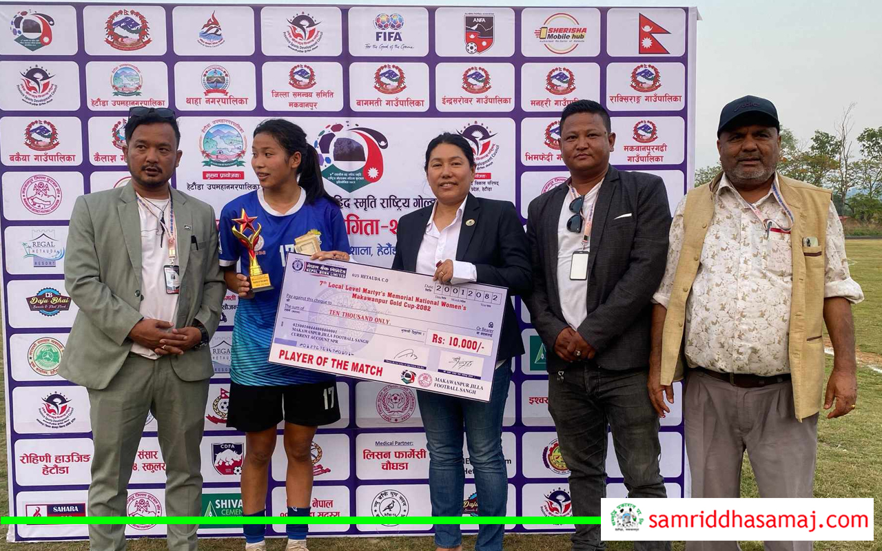 प्लेयर अफ द म्याच संकटाकी ममता घोषित भइन् । उनले १० हजार रुपैयाँ प्राप्त गरिन् । जीतसँगै संकटा प्रतियोगिताको सेमिफाइनलमा प्रवेश गरेको छ भने सिमरा बाहिरिएको छ । प्रतियोगिताको फाइनल खेल बुधबार हुनेछ । प्रतियोगिताको विजेताले ५ लाख र उपविजेताले ३ लाख रुपैयाँ शिल्ड, मेडल र प्रमाणपत्र प्राप्त गर्नेछन् ।