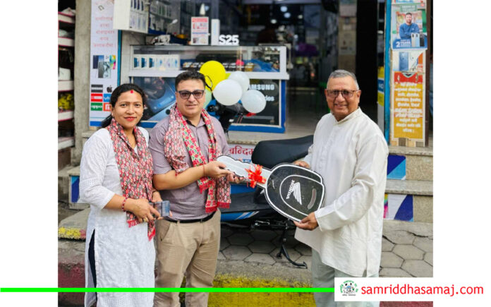 हेटौँडा : हेटौँडा–४ स्कुलरोडमा रहेको सेरिसा मोबाइल हबमा मोबाइल किन्नुभएका हेटौँडा–११ का रमेश श्रेष्ठले बम्पर पुरस्कार स्कुटर प्राप्त गर्नुभएको छ । शुक्रबार फेसबुक लाइभ मार्फत बम्पर पुरस्कार विजेता छानिएको हो ।
