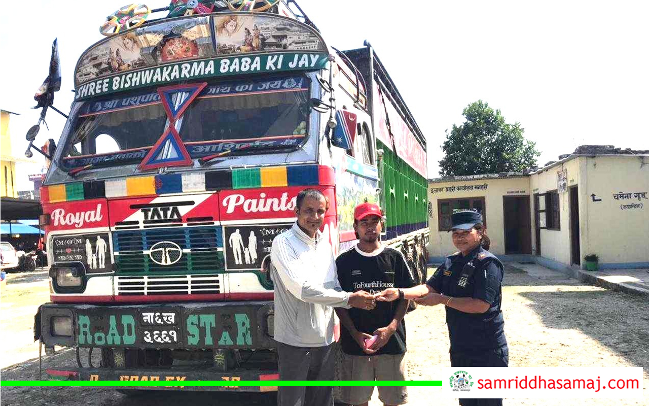 हराएको भनिएको ट्रक खोजी गरी धनीलाई फिर्ता गरिँदै ।