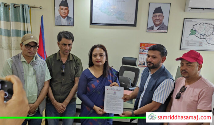 प्रमुख जिल्ला अधिकारी स्किम श्रेष्ठलाई ज्ञापनपत्र बुझाउँदै ।
