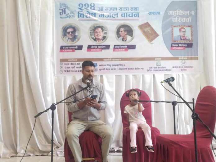 गजल मञ्च मकवानपुरको आयोजना तथा हेटौँडा उपमहानगरपालिका ४ नम्बर वडा कार्यालयको सहयोगमा भएको गजल यात्रा गजल मञ्च मकवानपुरका अध्यक्ष सन्जित श्रेष्ठको अध्यक्षता तथा वडा अध्यक्ष नवीन सिग्देलको प्रमुख आतिथ्य रहेको थियो ।