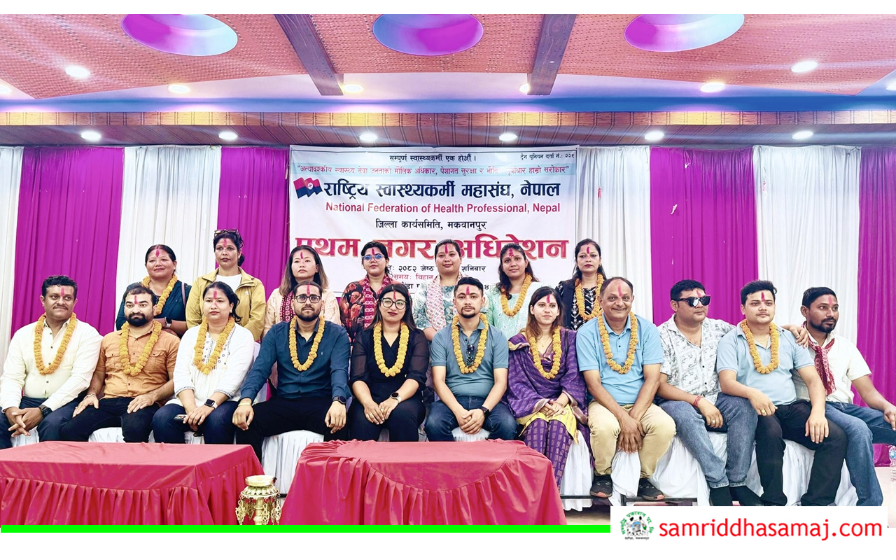 हेटौँडा : राष्ट्रिय स्वास्थ्यकर्मी महासंघ हेटौँडा उपमहानगरपालिका समितिको अध्यक्षमा कुशुम श्रेष्ठ चयन हुनुभएको छ । राष्ट्रिय स्वास्थ्यकर्मी महासंघ हेटौँडा उपमहानगरपालिका समितिको प्रथम भेलाले श्रेष्ठको नेतृत्वमा २१ सदस्यीय कार्यसमिति चयन गरेको हो ।