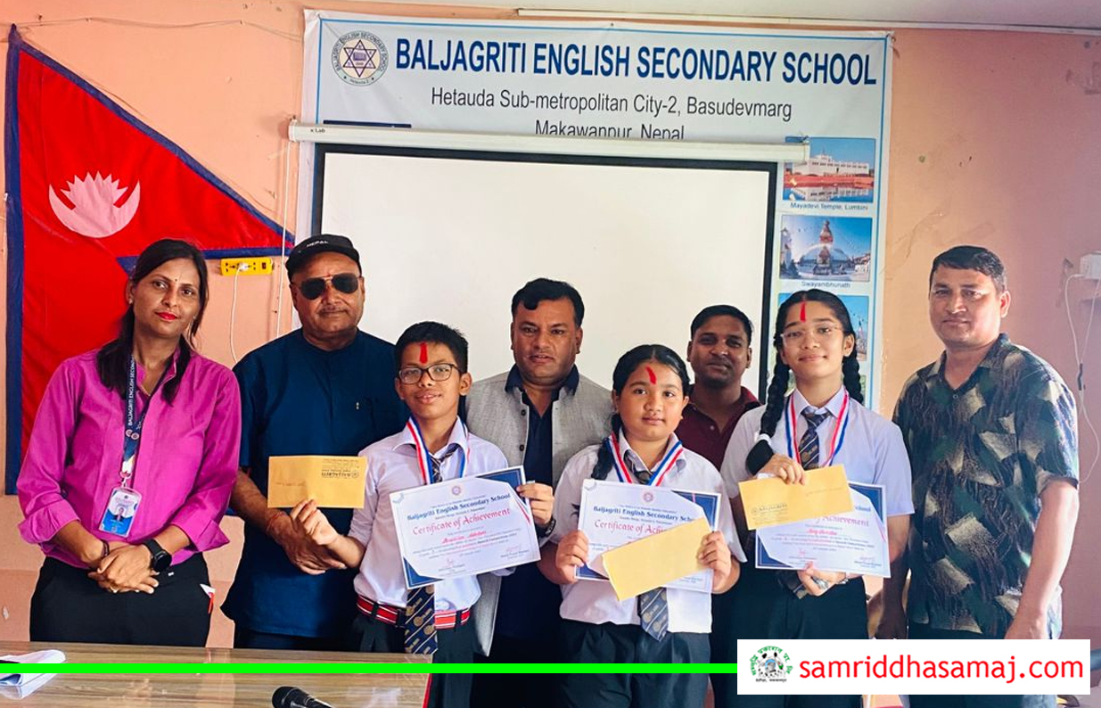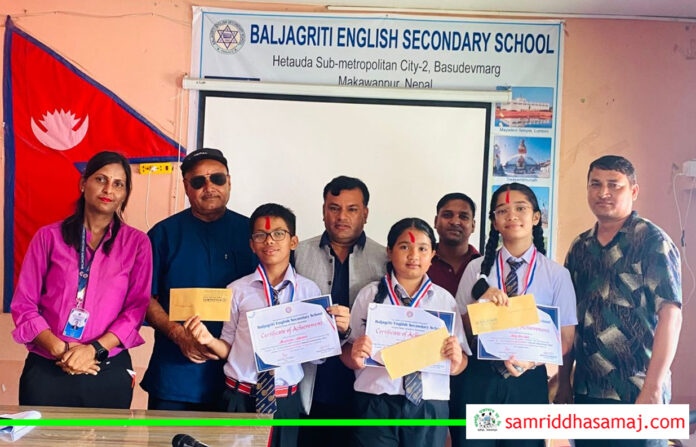 हेटौँडा : हेटौँडा–२ स्थित बालजागृति इंग्लिस सेकेण्डरी स्कूलमा वक्तृत्वकला प्रतियोगिता भएको छ । कक्षा–६, ७ र ८ का विद्यार्थीको सहभागितामा बुधबार वक्तृत्वकला प्रतियोगिता भएको हो ।