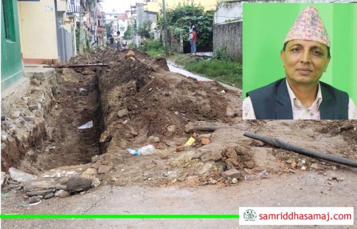 ढल निकाससहित सडक विस्तार गर्न भनी ठेक्का सम्झौता भएपछि स्थानीय दुई साताको अवधिमै पर्खाल भत्काएर बाटो फराकिलो गरी निर्माण व्यवसायीलाई काम गर्न सहज बनाए पनि झण्डै डेढ वर्षदेखि उक्त सडक निर्माण हुन सकेको थिएन । असारको अन्तिम हुँदै गर्दा बुधबारदेखि मात्रै व्यवसायीले ढल निर्माणका लागि खाल्डो खन्न सुरु गरेको थियो । बिहीबार बिहानको विवादसँगै निर्माण कार्य रोकिएको छ । वडाध्यक्षमाथि आक्रमणको घटनापछि वडा कार्यालयले पनि शुक्रबारका लागि तय गरिएको कार्यक्रम रद्द गरेको छ ।