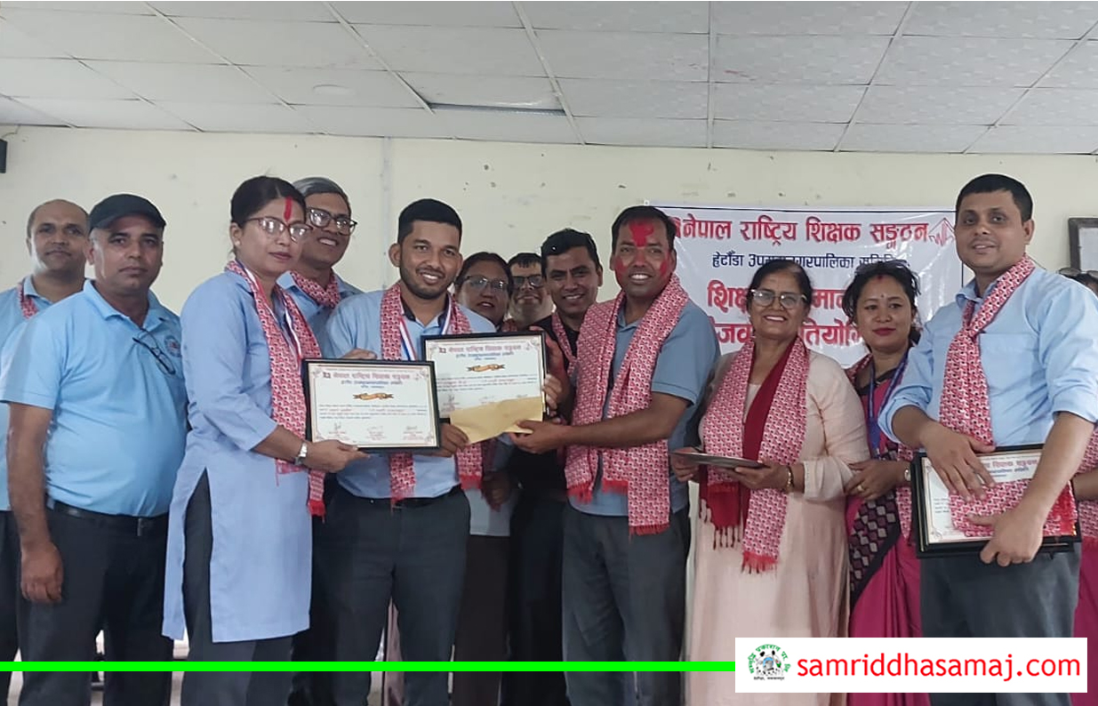 नेपाल राष्ट्रिय शिक्षक संगठनको हेटौंडा उपमहानगरपालिका अध्यक्ष कृष्णप्रसाद पोखरेलको सभाध्यक्षतामा भएको हाजिरीजवाफ प्रतियोगितामा संगठनको राष्ट्रिय समिति उपमहासचिव श्रीराम दहालको प्रमुख आतिथ्य थियो । कार्यक्रममा संगठनको बागमती प्रदेश समितिका कोषाध्यक्ष लक्ष्मी भण्डारी, प्रदेश समिति सदस्यहरु सुनिल गौतम, बालकृष्ण श्रेष्ठ, लक्ष्मी प्याकुरेल, नेपाल शिक्षक महासंघ मकवानपुर अध्यक्ष जिधराज ढकाल, संगठनको मकवानपुर जिल्ला अध्यक्ष मुकुन्द न्यौपानेको विशिष्ट आतिथ्य थियो ।