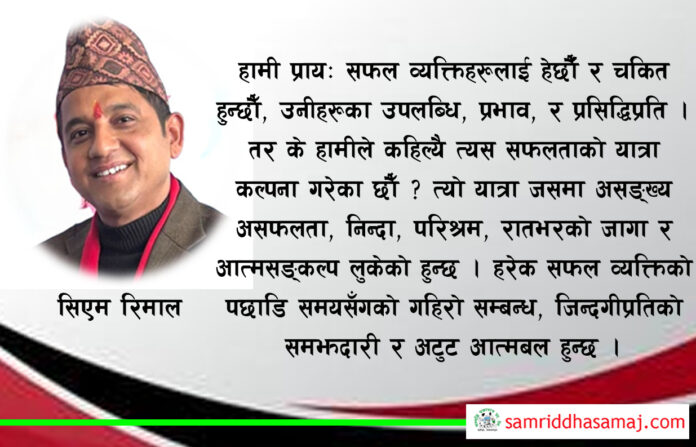 हामी प्रायः सफल व्यक्तिहरूलाई हेर्छौँ र चकित हुन्छौँ, उनीहरूका उपलब्धि, प्रभाव, र प्रसिद्धिप्रति । तर के हामीले कहिल्यै त्यस सफलताको यात्रा कल्पना गरेका छौँ ? त्यो यात्रा जसमा असङ्ख्य असफलता, निन्दा, परिश्रम, रातभरको जागा र आत्मसङ्कल्प लुकेको हुन्छ । हरेक सफल व्यक्तिको पछाडि समयसँगको गहिरो सम्बन्ध, जिन्दगीप्रतिको समझदारी र अटुट आत्मबल हुन्छ । बिना निरन्तर प्रयास, बिना लगनशीलता र बिना त्याग कसैले पनि सफलता प्राप्त गर्न सक्दैन । संसारका सबै महान् व्यक्तिहरूले समयलाई धर्म माने, जिन्दगीलाई साधना बनाए र सफलतालाई उद्देश्य । आज तिनैको नाम इतिहासका पानामा चम्किरहेको छ ।