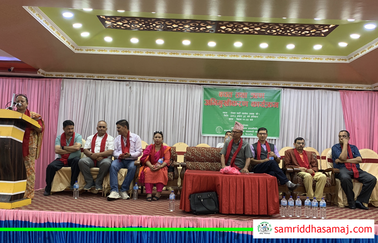 आगामी आर्थिक वर्ष २०८२/०८३ देखि सहकारीले बचत तथा ऋण कार्यक्रमलाई विस्तार गर्ने तयारीस्वरुप शेयर सदस्यहरुलाई प्रभावकारी बचत तथा ऋण परिचालनबारे वित्तीय ज्ञान दिने उद्देश्यले अभिमुखीकरण कार्यक्रमको आयोजना गरिएको सहकारीका कोषाध्यक्ष मोहनप्रसाद न्यौपानेले जानकारी दिनुभयो । ५ सय ९४ जना सेयर सदस्य रहेको बहुउद्देश्यीय सहकारीमा बचत तथा ऋण कार्यक्रममा हालसम्म १ सय जना मात्रै सहभागी रहेको तथा ऋण परिचालन हुन नसकेको सन्दर्भमा सहकारीले बचत तथा ऋण कार्यक्रमलाई विस्तार एवम् व्यवस्थित गर्न खोजेको कोषाध्यक्ष न्यौपानेले बताउनुभयो । शनिबारको अभिमुखीकरणमा सहभागी मध्ये १ सय जनाले बचत तथा ऋण कार्यक्रममा सहभागी हुने प्रतिवद्धता समेत जनाएको कोषाध्यक्ष न्यौपानेले जानकारी दिनुभयो ।