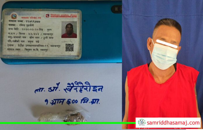 हेटौँडा : लागूऔषध खैरो हेरोइनसहित मकवानपुर प्रहरीले हेटौँडा–११ का रविन्द्र पुडासैनीलाई पक्राउ गरेको छ ।