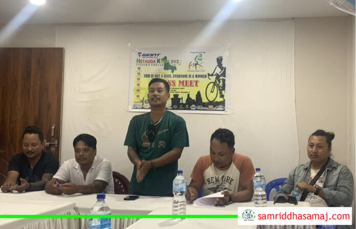 कोरा साइकलयात्रा बारे जानकारी दिनुहुँदै हेटौँडा राइडर्स क्लबका अध्यक्ष विकास ताम्राकार ।