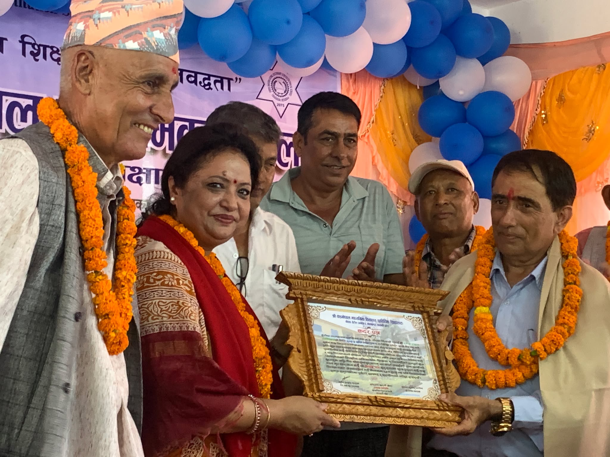 उहाँले वर्तमान समयमा नेपाली समाजमा बालबालिकाहरुलाई नैतिकता बारे ज्ञान नदिँदा विभिन्न सामाजिक तथा व्यावहारिक जीवनमा समस्या परिरहेको र व्यावसायिक शिक्षाको व्यवस्था नहुँदा दैनिक जीवनमा आइपर्ने काम तथा आधारभूत सीपहरु बालबालिकामा सानैबाट विकास हुन नसकेको बताउनुभयो । यसको नीतिगत सुरुवातका लागि आफ्नो मन्त्रालय लागिरहेको पनि उहाँले जानकारी दिनुभयो । विद्यालय व्यवस्थापन समितिका अध्यक्ष कृष्णप्रसाद दाहालको सभाध्यक्षतामा भएको कार्यक्रममा विद्यालयमा १७ वर्ष प्रधानाध्यापकको जिम्मेवारी निर्वाह गरी विद्यालय सुधारमा उल्लेखनीय भूमिका निर्वाह गरेको भन्दै सेवानिवृत्त शिक्षक रमेशप्रसाद लामिछानेलाई सम्मान गरिएको छ ।