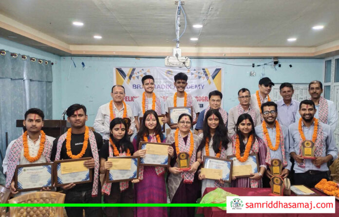 हेटौँडा : हेटौँडा–४ स्थित ब्रह्मदिक एकेडेमीले २०८१ सालको एसईईमा जीपीए ३.६ भन्दा बढी प्राप्त गर्ने आफ्ना विद्यार्थीलाई नगदसहित सम्मान गरेको छ । बुधबार विद्यालयमै एक समारोहका बीच जीपीए ३.६ भन्दा बढी प्राप्त गर्ने ९ जना विद्यार्थीलाई जनही १० हजार रुपैयाँसहित सम्मान गरिएको हो ।
