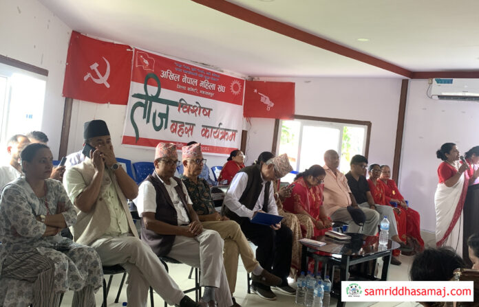 अखिल नेपाल महिला संघ मकवानपुरकी अध्यक्ष सुमित्रा काफ्लेको सभाध्यक्षतामा भएको कार्यक्रममा नेकपा एमालेका केन्द्रीय सदस्य जुनेली श्रेष्ठ, केन्द्रीय तथा बागमती प्रदेशस्तरीय नेताहरु, अखिल नेपाल महिला संघका केन्द्रीय सदस्यहरु, प्रदेश सदस्यहरुलगायत विभिन्न भातृसंगठनका प्रतिनिधिहरुको सहभागिता थियो ।