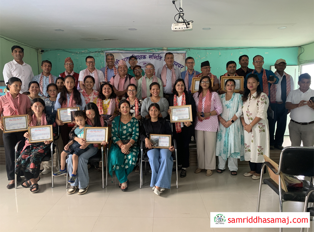 हेटौँडा : नेपाली भाषा शिक्षक समिति मकवानपुरले कक्षा १२ को परीक्षामा नेपाली विषयमा उत्कृष्ट नतिजा ल्याउने विद्यार्थीलाई सम्मान गरेको छ । शनिबार हेटौँडामा एक कार्यक्रम आयोजना गर्दै समितिले कक्षा १२ मा नेपाली विषयमा ग्रेड ‘ए प्लस’ ल्याउने विद्यार्थी, नेपाली विषय अध्यापन गर्ने शिक्षकहरुलाई सम्मान गरेको हो ।