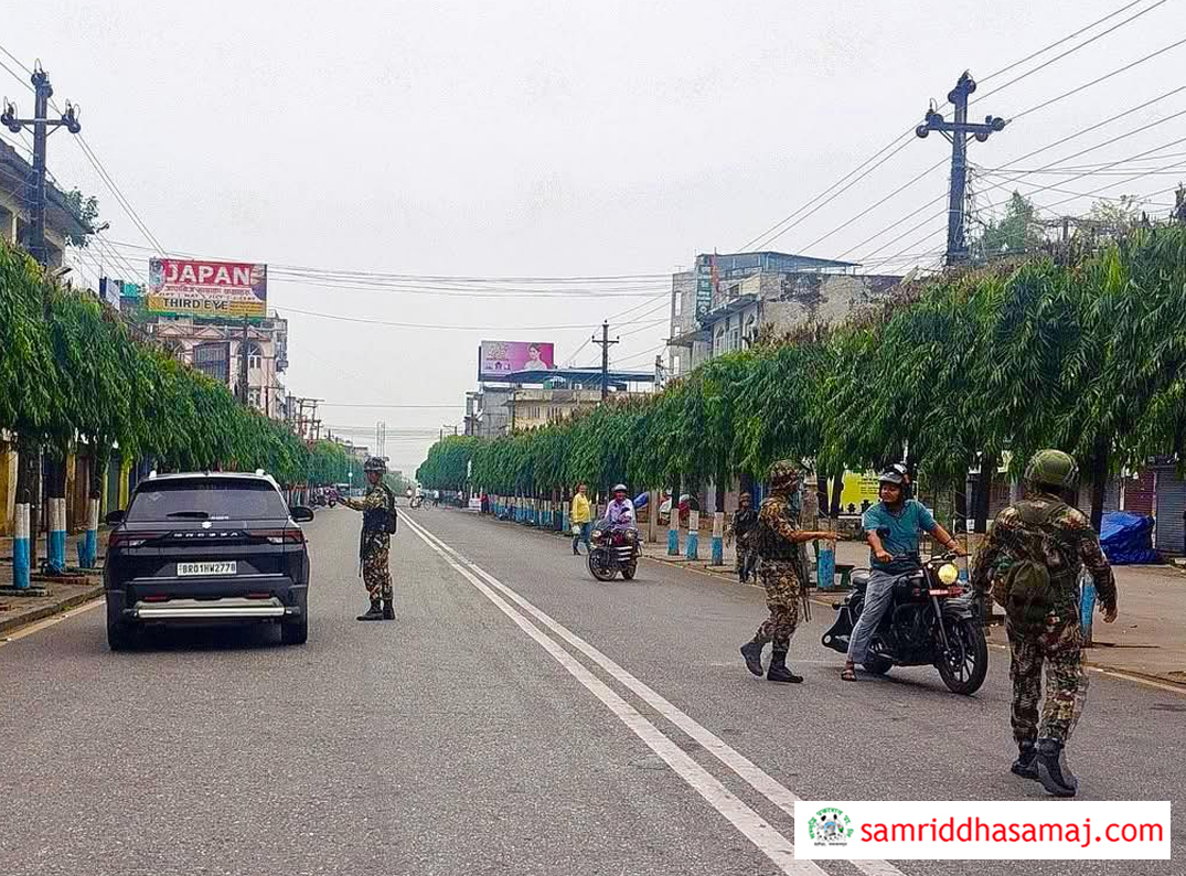 हेटौँडाको मेनरोडमा सुरक्षा दिँदै नेपाली सेना ।
