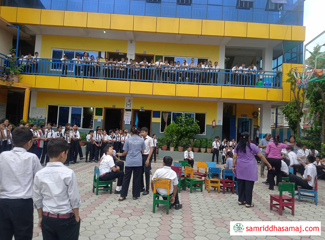 ‘बालबालिकामा लगानी ः सुनिश्चित भविष्यको थालनी’ भन्ने मूल नाराका साथ आइतबार ६१ औँ राष्ट्रिय बाल दिवस मनाइएको हो । उक्त अवसरमा चेस, स्क्र्याबल, ब्याडमिन्टन, बास्केटबल, म्युजिकल चेयर, कबड्डी, ढाडमा पुस्तक राखी सन्तुलन गर्ने जस्ता खेलहरु आयोजना गरिएको थियो । ती खेलहरु कक्षागत शिक्षकहरुको उपस्थितिमा छुट्टाछुट्टै खेलाइएको हो । विजेताहरुले पछि पुरस्कार पाउनेछन् । जेन जी आन्दोलनका कारण २४ गतेबाट प्रभावित पठनपाठन आइतबारदेखि सुचारु भएको थियो । विदापछि विद्यालय सञ्चालन हुँदा सुरुको दिन २ सय १५ जना विद्यार्थी अनुपस्थित हुँदा १ हजार ४ सय ७ उपस्थित भएका थिए ।