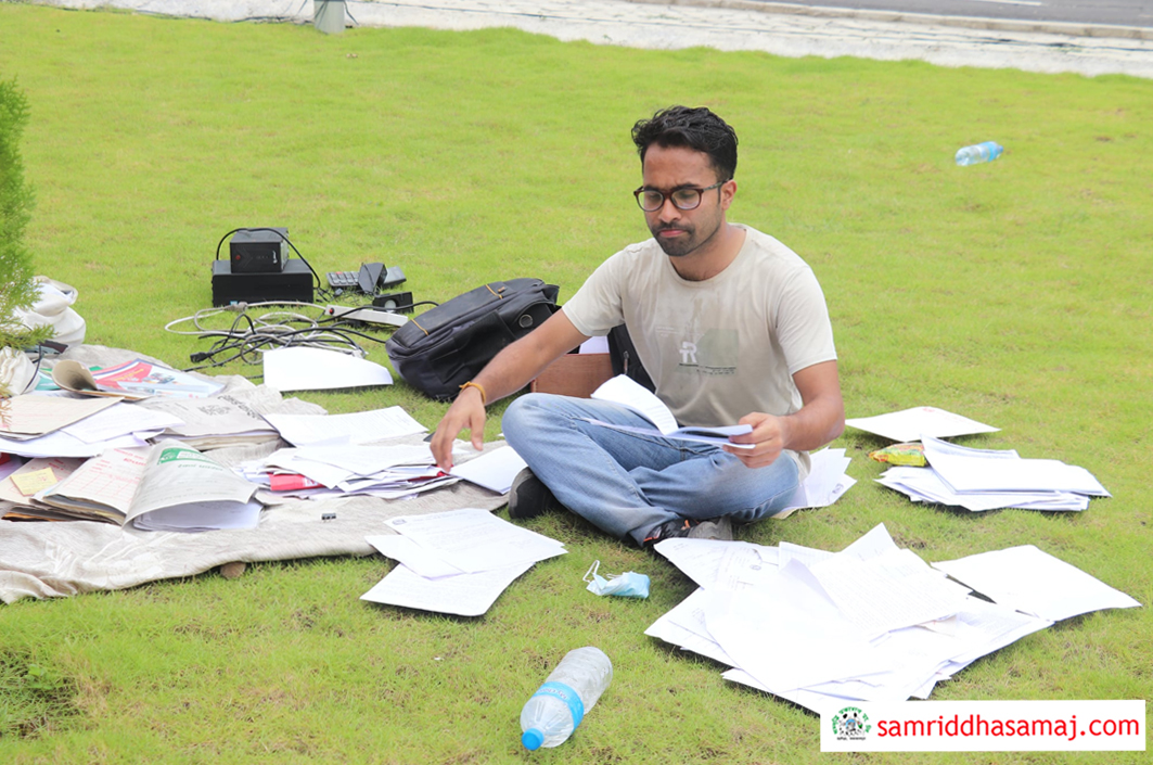 अन्य केही कर्मचारी पनि उनलाई सघाउने र फाइल मिलाउने काममा व्यस्त थिए । यो दृश्य भदौ २७ शुक्रबार दिउँसो १ बजे तिरको हो र घटना बागमती प्रदेशको सहकारी तथा गरिवी निवारण मन्त्रालयको हो । मन्त्रालय परिसरमा लहलहाउँदो दुवोमा पलेटी कसेर बस्ने कर्मचारी थिए राम गजुरेल । उनी सहकारीका फाइल तथा रेकर्डहरुलाई व्यवस्थित गर्न व्यस्त थिए । सरकारीका उजुरी, तथ्यांक तथा अन्य विवरण समावेश भएको पत्रहरु व्यवस्थित गर्ने काममा उनी सक्रिय थिए । कागजात व्यवस्थित गरेर पुनः सेवा प्रवाह गर्ने तयारीका साथ पुनः निर्माणमा उनीहरु जुटेका थिए ।