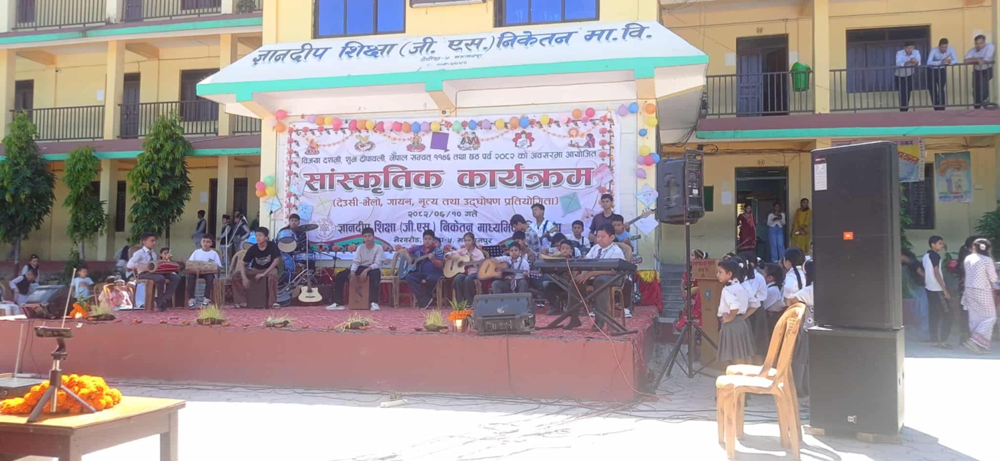 हेटौंडा : हेटौंडा–५ स्थित ज्ञानदीप शिक्षा (जीएस) निकेतन माध्यमिक विद्यालयले विजया दशमी, शुभ दीपावली तथा छठ पर्वको अवसरमा विविध सांस्कृतिक कार्यक्रम गरेको छ । शुक्रबार विद्यालयले देउसी–भैलो, गायन, नृत्य तथा उद्घोषण प्रतियोगितासहितको सांस्कृतिक कार्यक्रम गरेको हो ।