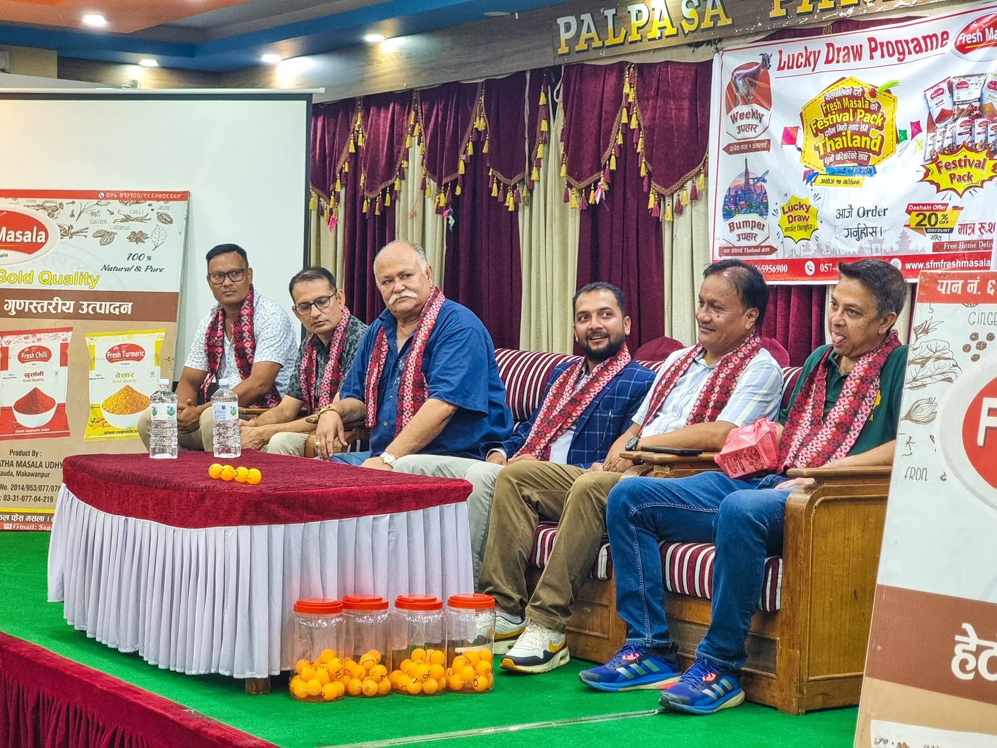 कम्पनीले दशैँको अवसरमा हरेक साता लक्की ड्रमार्फत् मसला खरिद गर्ने उपभोक्तामध्ये एक जनालाई ३० केजीको खसी उपहार दिँदै आएको छ । यो हप्ताभित्र विजेताले सम्पर्क गरेर उपहार लिनुपर्ने बताइएको छ । विजेता सम्पर्कमा आएपछि खसी हस्तान्तरण गर्ने प्रालिका प्रबन्ध निर्देशक आयुष डोटेलले बताउनु भयो ।