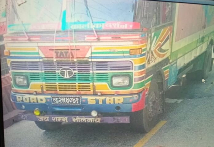 प्रहरीले नियन्त्रणमा लिएको कन्टेनर ट्रक ।