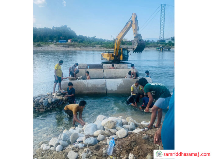 हेटौँडा : हिउँद लागेसँँगै मकवानपुरको मनहरी गाउँपालिकास्थित राप्तीखोला पार गर्न बाटो बनाइँदै । स्थानीयले राप्तीखोला पार गर्न ह्युम पाइप राखेर बाटो बनाउने गरेका छन् ।