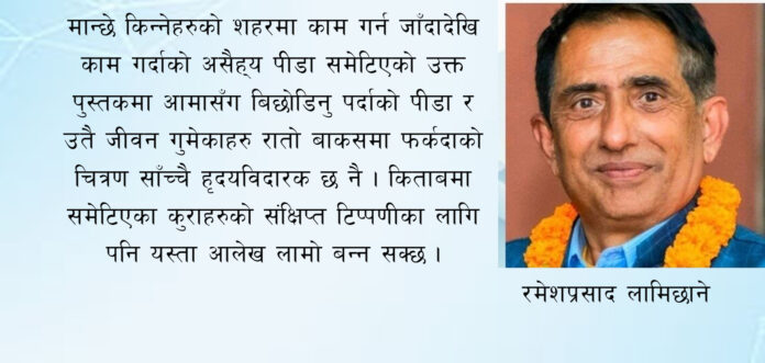 नीति, विधि, कानून र नियम भन्दा माथिका कतारी मालिकहरुले प्रदर्शन गरेको अत्यन्त अमानवीय हर्कतहरु भनेर नसिद्धिने खालका रहेछन् । स्याङ्घजाका राजकुमारको कथा भने अलि फरक लागे पनि अरु सबैको दिनचर्या र भोगाई उस्तै रहेको पाइन्छ । मान्छे किन्नेहरुको शहरमा काम गर्न जाँदादेखि काम गर्दाको असैह्य पीडा समेटिएको उक्त पुस्तकमा आमासँग बिछोडिनु पर्दाको पीडा र उतै जीवन गुमेकाहरु रातो बाकसमा फर्कदाको चित्रण साँच्चै हृदयविदारक छ नै । किताबमा समेटिएका कुराहरुको संक्षिप्त टिप्पणीका लागि पनि यस्ता आलेख लामो बन्न सक्छ । उल्लेखित कुराहरु राम्रैसँग अनुभूति गर्न त किताब नै गहिरिएर पढ्नुपर्ने हुन्छ । भन्न त, बिदेशिनेको यस्तै कहानी हुन्छ भनेर टार्न सजिलो होला । यस्ता कथा धेरैले लेखेका छन् भन्ने पनि भेट्न सकिन्छ । तर, भन्नु र लेख्नुमा निश्चय नै अन्तर हुन्छ नै । होमजीको यो प्रस्तुतीले खाडी क्षेत्रमा काम गर्ने नेपालीहरुको यथार्थ चित्रण भएको छ । अझै लेखकबाट, यस्तै रोचक र मार्मिक जीवन्त चित्रण उल्लेखित किताबहरुको अपेक्षा गर्दछु ।