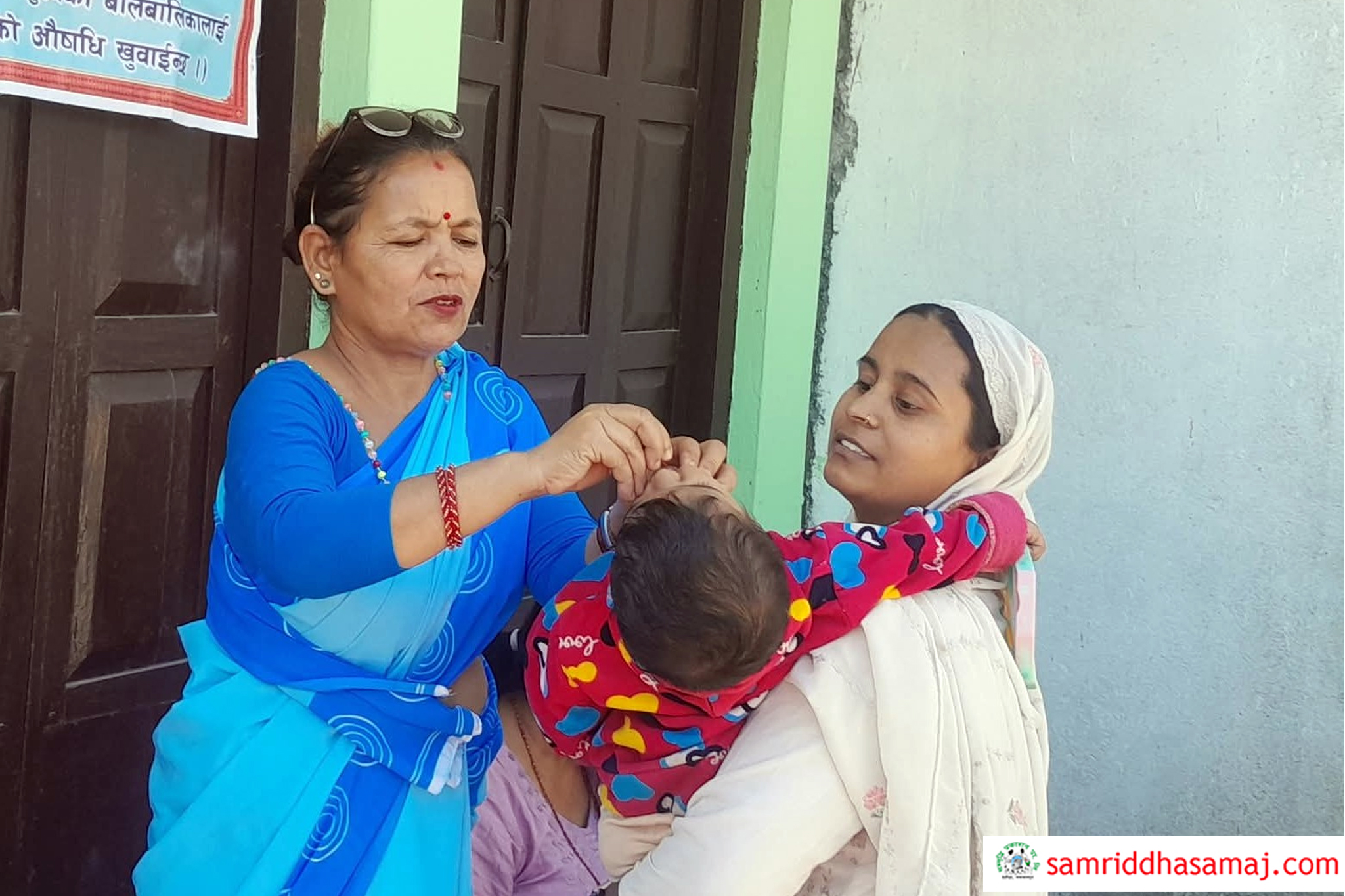 हेटौँडा–१, पानसुके चोकस्थित खोप केन्द्रमा बिहीबार एक बालकलाई भिटामिन ए र जुकाको औषधी खुवाइँदै ।
