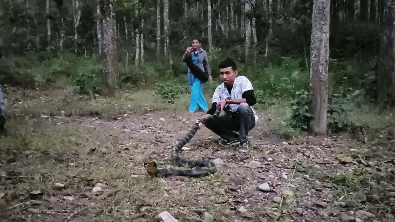 किङ कोब्राको उद्दार गरिँदैको तस्वीर ।