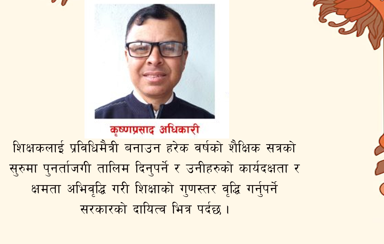 नेपालमा २००७ साल यता थुप्रै संविधान, ऐन कानुनहरु निर्माण भए । त्यसलाई आधार मानेर विभिन्न सरकारहरु पनि गठन भए । तर संविधान मानेर त्यसका आधारमा बनेका ऐन कानुनको सपथ लिएर शासक बनेकाहरुले सुशासन कहिल्यै कायम गर्न सकेनन् । यसको सबैभन्दा नराम्रो असर शिक्षा क्षेत्रमा पर्न गयो । नेपालको इतिहासमा सबैभन्दा बढी सांसद, मन्त्री र सरकारको निर्माण भएको समय भनेर पनि यही तीन दशकलाई हेर्दा प्रष्ट हुन्छ । अझ भन्ने हो भने २०४७ सालको बहुदलीय व्यवस्था प्राप्तिपछि देशमा ३५ वर्षको अवधिमा ३० वटा सरकार बन्यो जसले गर्दा कुनै पनि सरकार पूरा अवधि चल्न सकेन र सरकार अस्थिर बन्न पुग्यो । एउटै पार्टीको नेतृत्वमा पटक–पटक सरकार बन्ने र पुनः अचानक सरकार परिवर्तन हुँदा त्यसको प्रत्यक्ष असर शिक्षामा पर्न गयो । कुनै पनि देशको विकासको सूचकहरुमध्ये सबैभन्दा महत्वपूर्ण सूचक शिक्षा हो । शिक्षाको विकास बिना त्यो देशको समग्र विकास हुन सम्भव छैन ।