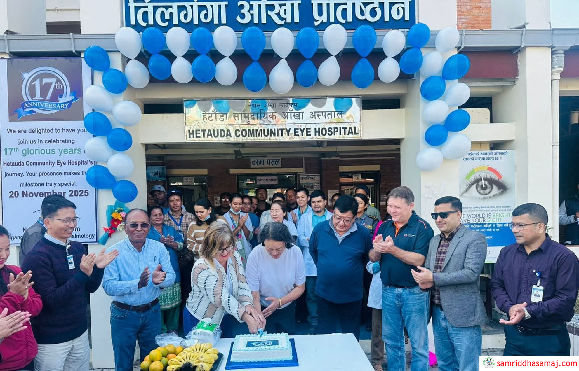 हेटौँडा : हेटौँडा–१० स्थित हेटौँडा सामुदायिक आँखा अस्पताल स्थापनाको १७औं वर्ष पूरा गरी १८औं वर्षमा प्रवेश गरेको छ । अस्पतालले वरिष्ठ नेत्र स्वास्थ्य विशेषज्ञ डा. सन्दुक रुइतको उपस्थितिमा बिहीबार अस्पताल परिसरमै वार्षिकोत्सव मनाइएको हो । तिलगंगा आँखा प्रतिष्ठानले उपत्यका बाहिरकै पहिलो आँखा अस्पतालको रुपमा स्थापना गरेको हेटौँडा सामुदायिक आँखा अस्पताल २०६५ साल मंसिर ४ गते नेपालका लागि तत्कालिन अष्ट्रेलियन राजदूत ग्राहम लेडले उद्घाटन गर्नुभएको थियो ।