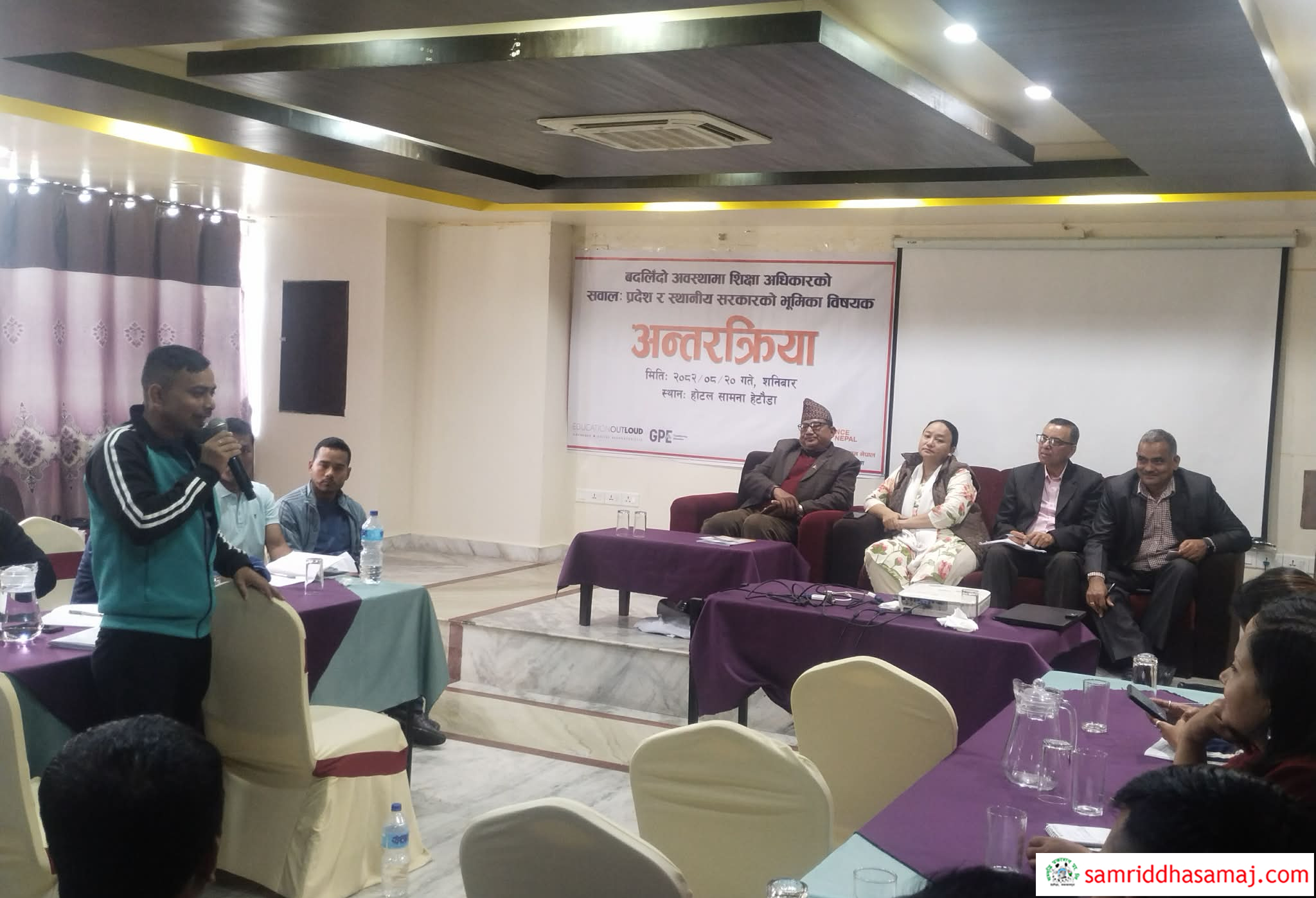 अन्तरक्रियामा शिक्षाका लागि राष्ट्रिय अभियानका कार्यकारी निर्देशक राम गैरे र बागमती प्रदेश सरकार मातहतको शिक्षा विकास निर्देशनालयका महानिर्देशक गोपाल कँडेलले कार्यपत्र प्रस्तुत गर्नुभएको थियो । गैरे र कँडेलको प्रस्तुतीपछि सहभागीले प्रदेश र स्थानीय सरकारको भूमिकाका बारेमा धारणा राखेका थिए । हेटौँडा–१५ स्थित वनदेवी आधारभूत विद्यालयका सहायक प्रधानाध्यापक कुमार रुम्बाले विद्यालयमा पालिकाको हस्तक्षेपकारी भूमिका जरुरी रहेको औँल्याउनुभयो । पालिकामा अनुगमन संयन्त्र भए पनि त्यसले काम गर्न नसकेको, विद्यालयसँग पानी र विजुलीको महसुल तिर्ने स्रोत पनि नभएको उल्लेख गर्नुहुँदै रुम्बाले विद्यालय व्यवस्थापन समितिको नेतृत्वमा वास्तविक अभिभावकको सहभागिता सुनिश्चित गर्नुपर्ने धारणा राख्नुभयो ।