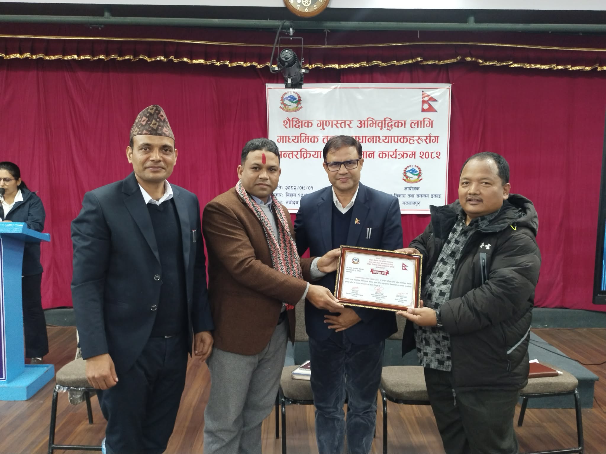 अन्तरक्रियामा भरतपुरस्थित नारायणी नमुना माध्यामिक विद्यालयका प्रधानाध्यापक पूर्णप्रसाद दवाडीले प्रधानाध्यापकको भूमिकाको विषयमा प्रस्तुती राख्दै भएको छ । शिक्षा विकास तथा समन्वय इकाई मकवानपुरका प्रमुख सुदीप गिरीको अध्यक्षता तथा जिल्ला शिक्षा समिति मकवानपुरका अध्यक्ष ललित बहादुर घलानको प्रमुख आतिथ्यमा अन्तरक्रियाको उद्घाटन कार्यक्रममा राष्ट्रिय परीक्षा बोर्डको हेटौँडास्थित कार्यालयका प्रमुख बद्रीबहादुर पाठकको पनि आतिथ्य रहेको थियो । अन्तरक्रियाकै अवसरमा २०८१ सालको एसईईमा उत्कृष्ट जीपीए ल्याउने विद्यालय, एसईईमा उत्कृष्ट औसत जीपीए हासिल गर्ने विद्यालयलाई सम्मान गरिएको छ ।