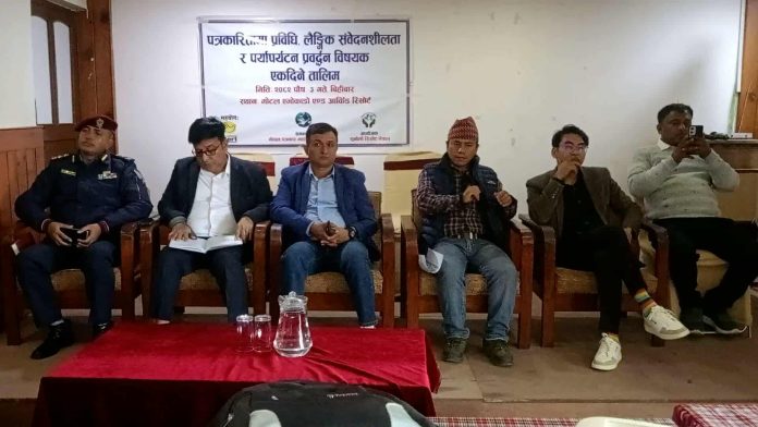 हेटौँडा : पत्रकारितामा प्रविधि, लैङ्गीक सवेदनशीलता र पर्यापर्यटन प्रवर्धन विषयक एकदिने तालिम हेटौँडामा सम्पन्न भएको छ । बिहिबार सुनौलो सिसौट नेपालको आयोजना तथा नेपाल पत्रकार महासंघ मकवानपुरको समन्वयमा तालिम सम्पन्न भएको हो ।