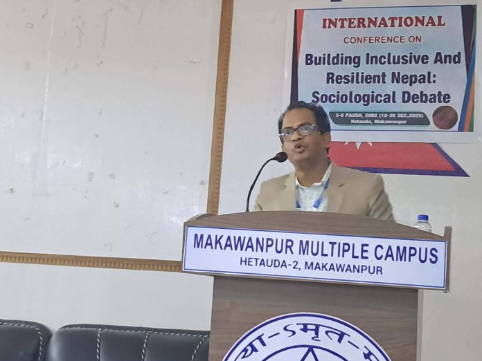 हेटौंडा : नेपालमा समावेशी र सबल समाज निर्माणका लागि केवल बलियो नीतिहरुमात्र आवश्यक नरहेको प्राध्यापक डा. देवाशिशकुमार कुन्डुको भनाइ छ । नेपाल समाजशास्त्र समाजको आयोजनामा हेटौंडामा जारी अन्तर्राष्ट्रिय समाजशास्त्र सम्मेलनमा शुक्रबार प्रस्तुति दिनुहुँदै बङ्गलादेशको ढाका विश्वविद्यालयका प्राध्यापक डा. कुन्डुले नेपालमा समावेशी र सबल समाज निर्माणका लागि केवल बलियो नीतिहरुमात्र नभई यसका लागि सामाजिक मान्यताहरुमा आधारभूत परिवर्तन, बहिष्करण र जोखिमका मूल कारणहरुलाई सम्बोधन गर्ने दिगो प्रतिबद्धता आवश्यक रहेको बताउनु भयो ।