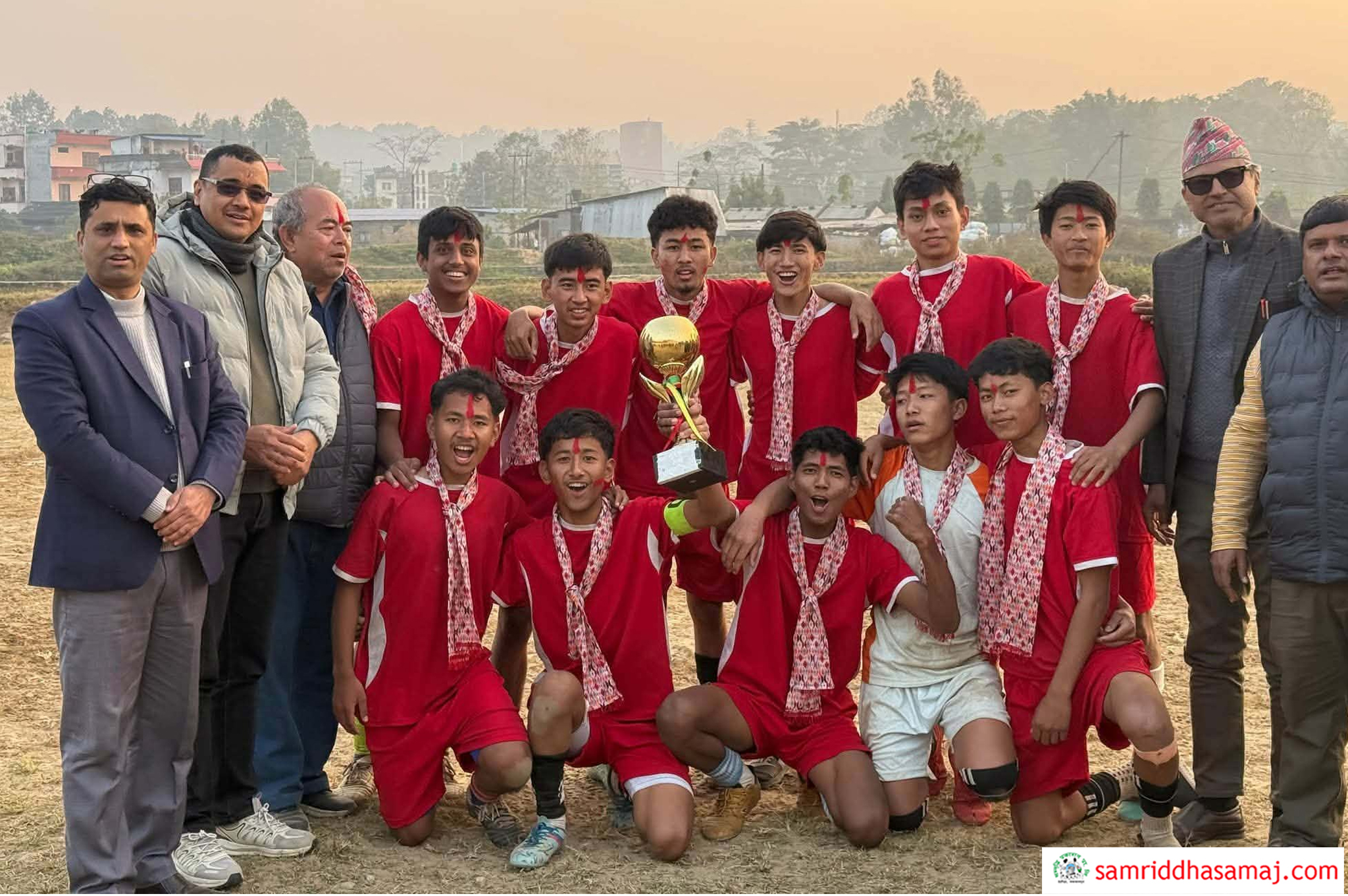 शनिबार भएको फाइनल खेलमा प्रगति माविले रस्सल एकेडेमीलाई १–० गोलअन्तरले पराजित गरेको हो । उपाधि जितेसँगै प्रगति माविले ५ हजार नगदसहित शिल्ड, मेडल र प्रमाणपत्र प्राप्त गर्नेछ भने उपविजेता बनेको रस्सल एकेडेमीले ३ हजार नगदसहित शिल्ड, मेडल र प्रमाणपत्र प्राप्त गर्नेछ ।
