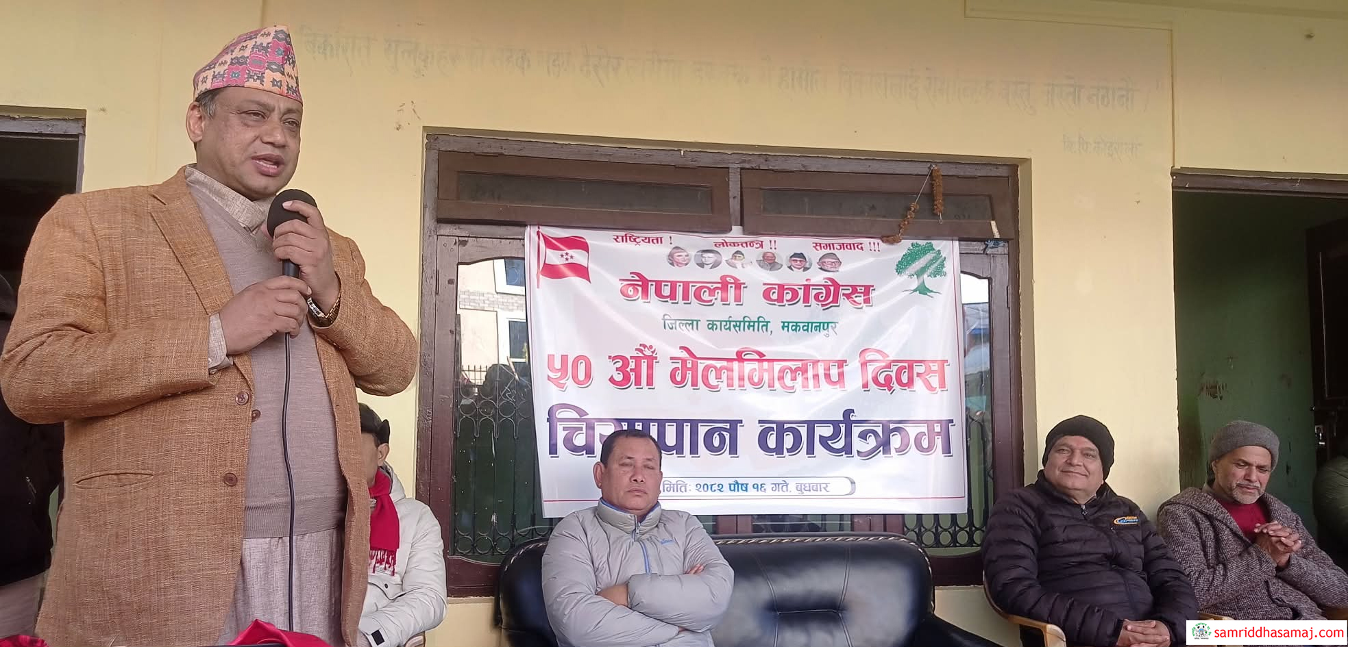 कार्यक्रमका सभाध्यक्ष एवम् नेपाली कांग्रेस मकवानपुरका सभापति बुद्ध लामाले सामाजिक सञ्जालले जन्माएका नेताहरूबाट देशको विकास सम्भव नहुने बताउनुभयो । उहाँले ‘लुकेर स्टेटस लेख्ने र नेपालको भूगोल तथा समाज नै नबुझेका सामाजिक सञ्जालले जन्माएका नेताहरूले यो देश बचाउन सक्लान् ?’ प्रश्न उठाउनु भयो । चियापान कार्यक्रममा नेपाली कांग्रेसका मकवानपुर जिल्लाका नेता तथा कार्यकर्ताहरुको उपस्थिति रहेको थियो ।