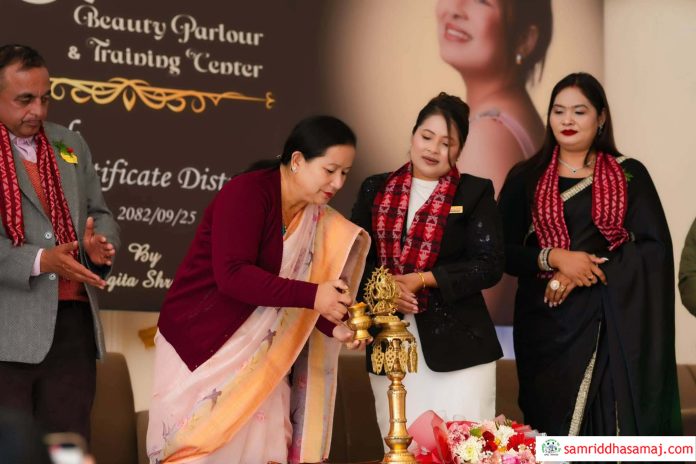 हेटौँडा : हेटौँडा–४, स्कूलरोडस्थित सिजन ब्यूटी पार्लर एण्ड ट्रेनिङ सेन्टरले १८औँ प्रशिक्षार्थी समूहलाई प्रमाणपत्र वितरण गरेको छ । शुक्रबार आयोजित कार्यक्रममा तालिम पूरा गरेका प्रशिक्षार्थीहरूलाई प्रमाणपत्र प्रदान गरेको हो । हेटौँडाकै पुरानो तालिम केन्द्रका रूपमा सिजन ब्यूटी पार्लरले विगत २३ वर्षदेखि महिला सीप विकास र आत्मनिर्भरता प्रवद्र्धनमा योगदान दिँदै आएको छ ।