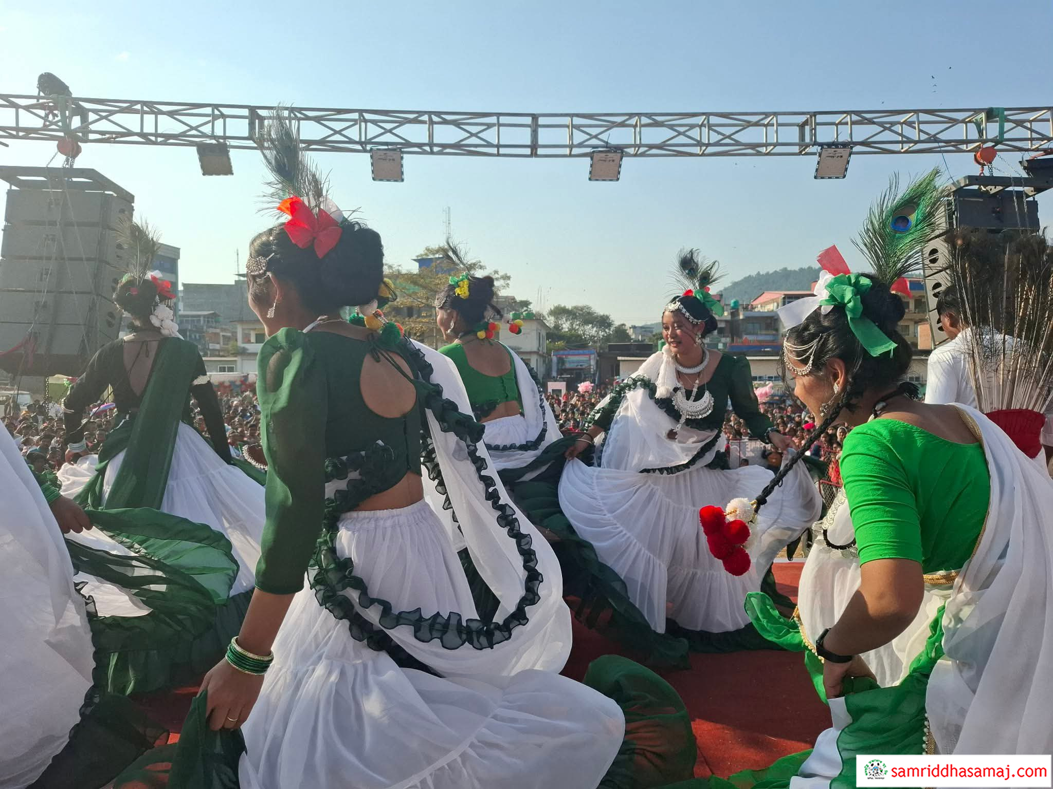 थारु महोत्सवमा नृत्य गर्दै थारु महिलाहरु ।