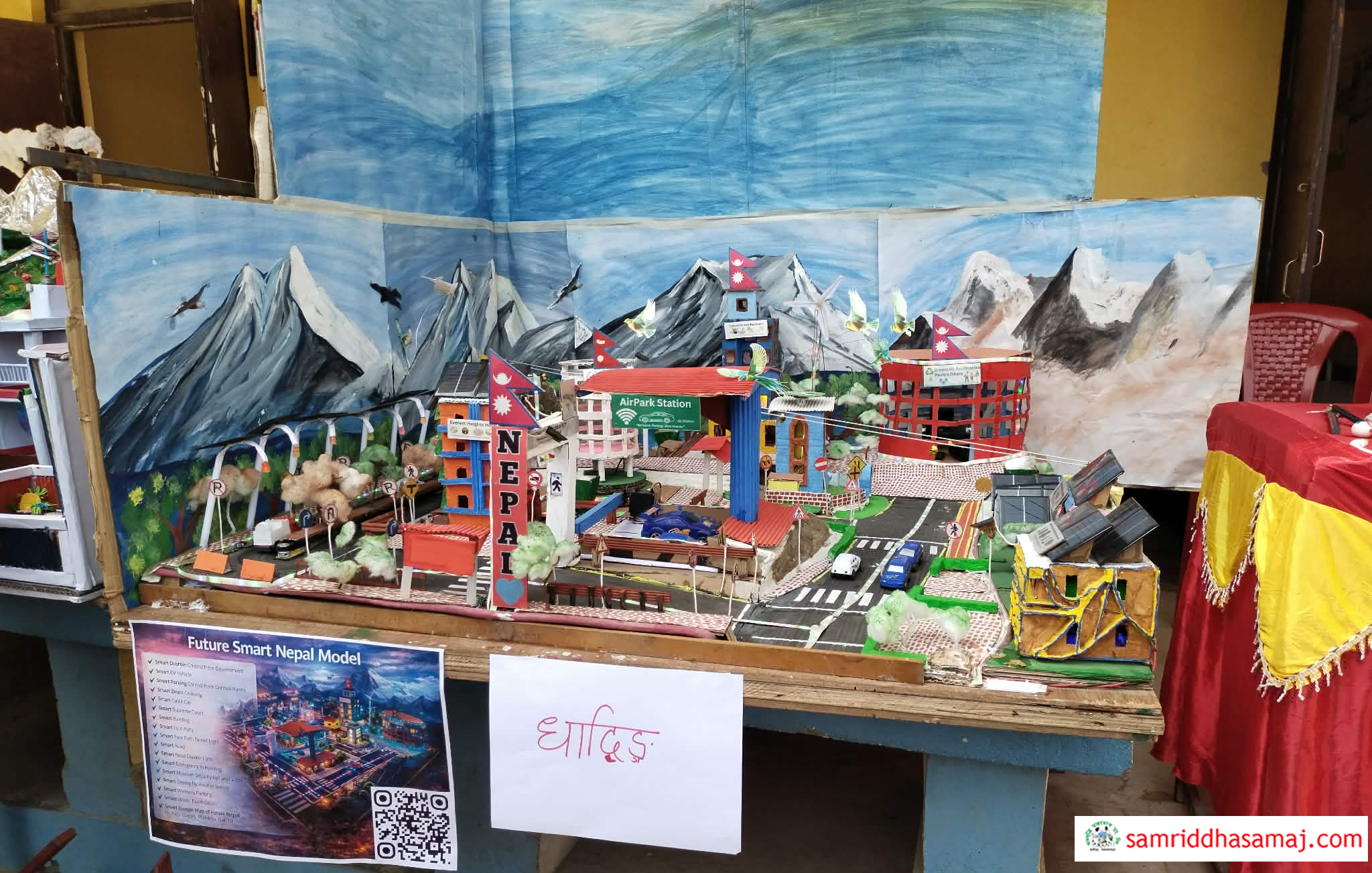 विज्ञान प्रदर्शनीमा सहभागी एक विद्यालयले व्यवस्थित सहरको नमूना प्रदर्शन गर्दै ।