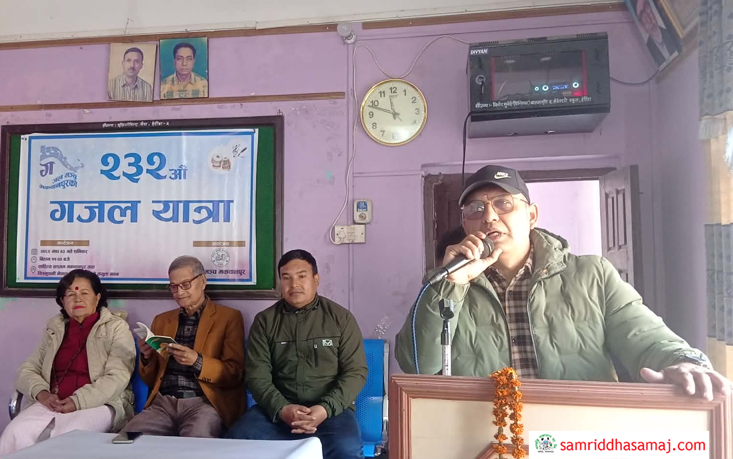 हेटौँडा : गजल मञ्च मकवानपुरको २३२ औँ नियमित गजल यात्रा सम्पन्न भएको छ । शनिबार बिहान गजल मञ्चका अध्यक्ष सञ्जित श्रेष्ठको सभाध्यक्षतामा कार्यक्रम भएको हो ।