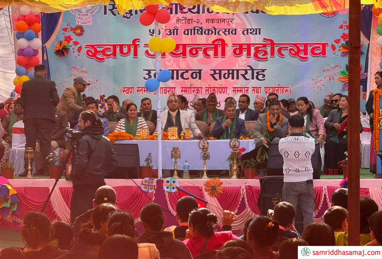 हेटौँडा : हेटौँडा–२ स्थित सिद्धार्थ माध्यमिक विद्यालयको स्वर्ण महोत्सव समारोह सुरु भएको छ । विविध कार्यक्रमको आयोजना गरी मनाइँदै गरेको स्वर्ण महोत्सवको बागमती प्रदेशका मुख्यमन्त्री इन्द्रबहादुर बानियाँले उद्घाटन गर्नुभएको छ ।