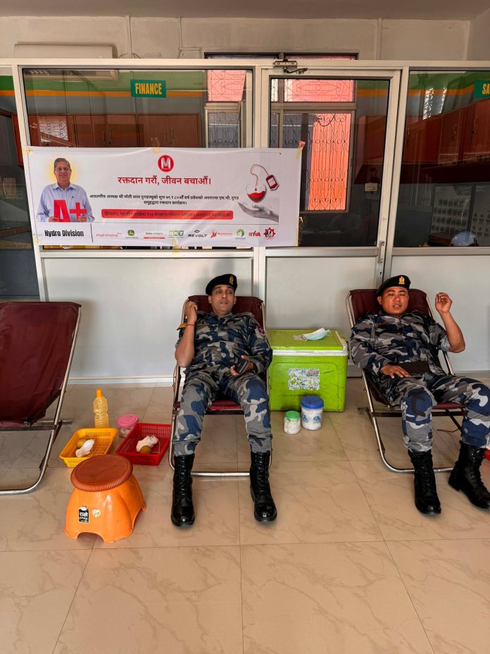 रक्तदान गर्दै प्रहरी